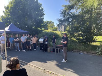 Dank zahlreicher helfender Hände wurde die Veranstaltung zu einem echten Highlight – besonders sollen in diesem Jahr das Engagement von Svenja Schachten, Philipp Rimpp und Michael Henke hervorgehoben werden. Das Grillteam unter der Leitung von Prof. Dr. Thomas Niemand kreierte köstliches Essen, und zur Erfrischung gab es eine abwechslungsreiche Auswahl an eiskalten Getränken. Besonders das frisch gezapfte Jubiläumsbier aus der Forschungsbrauerei kam hervorragend an. Ein großes Dankeschön gilt der Forschungsbrauerei, die auch wie im letzten Jahr, das Bier für unser Fest sponsorte.